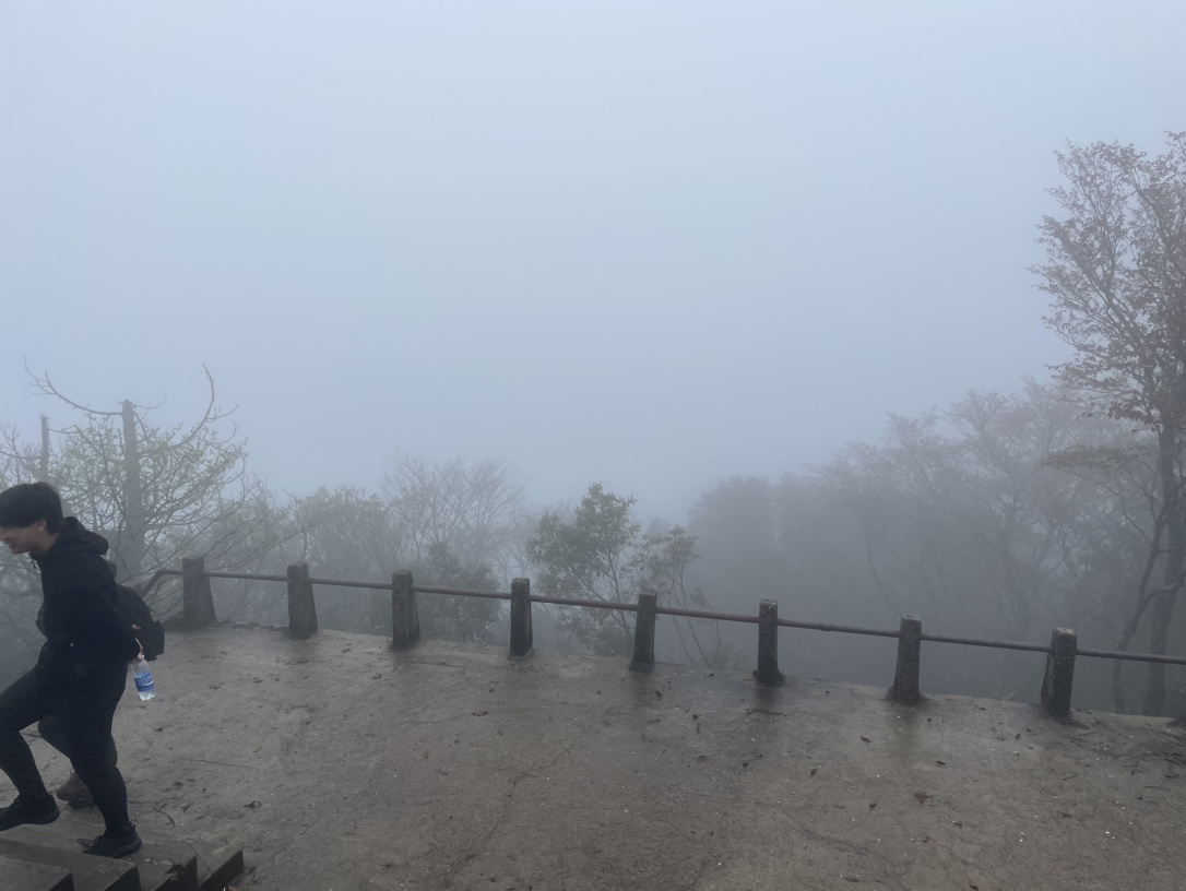 スタート地点のかまど神社にて。霧雨の中、登山開始です。