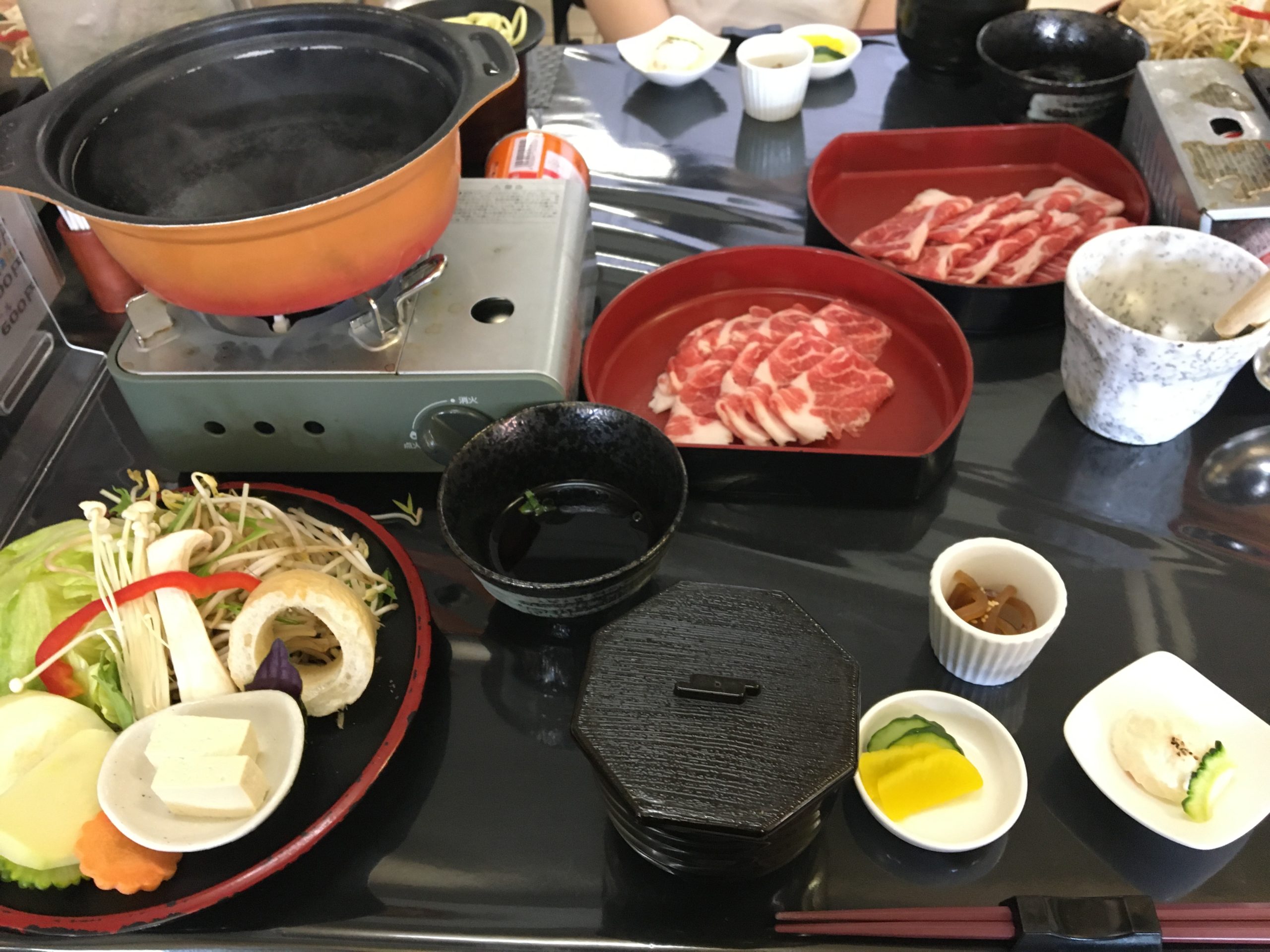 石垣島最後の食事(昼食)は、『あぐー豚のしゃぶしゃぶと島野菜』 美味しかった。