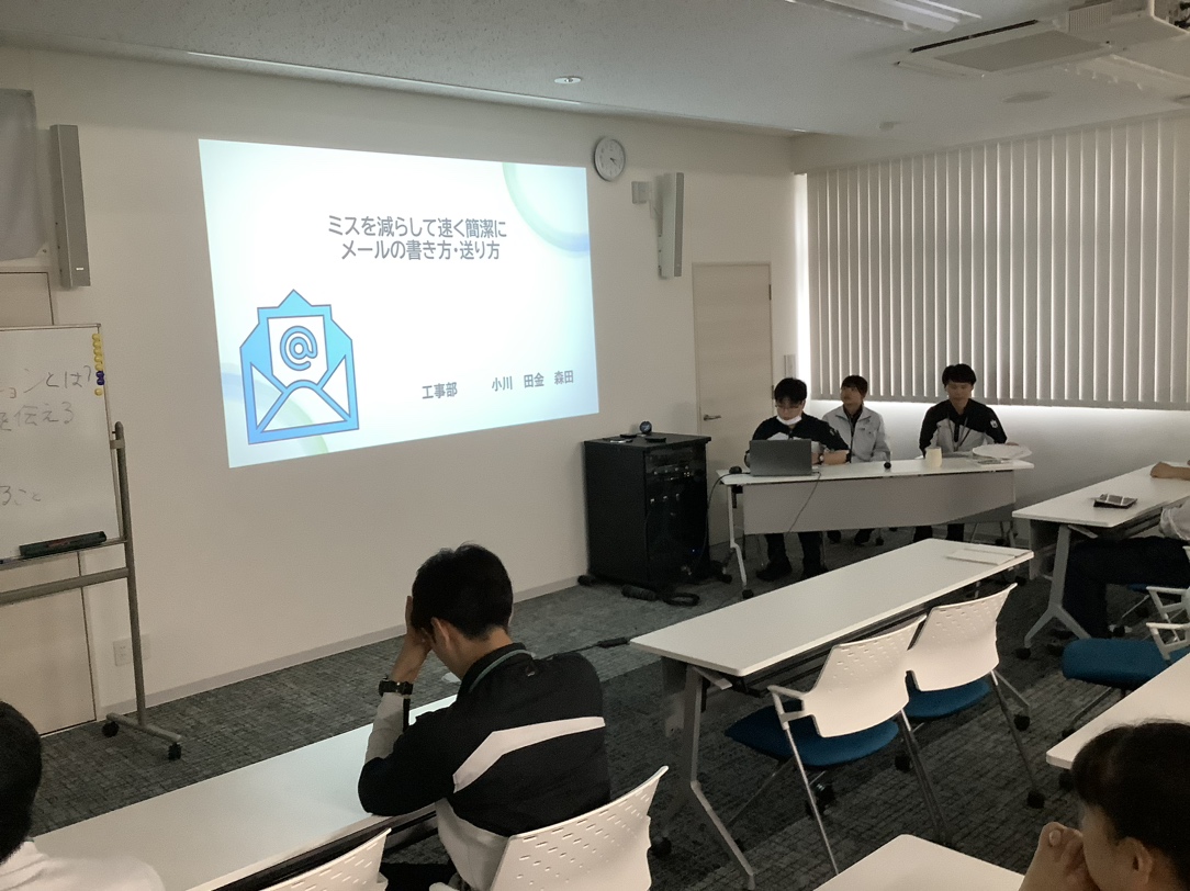 PowerPointのまとめはもちろん、聞き取りやすいしっかりとした発表でした。 入社してすぐの電話対応の実践の時とは、まったくの別人!