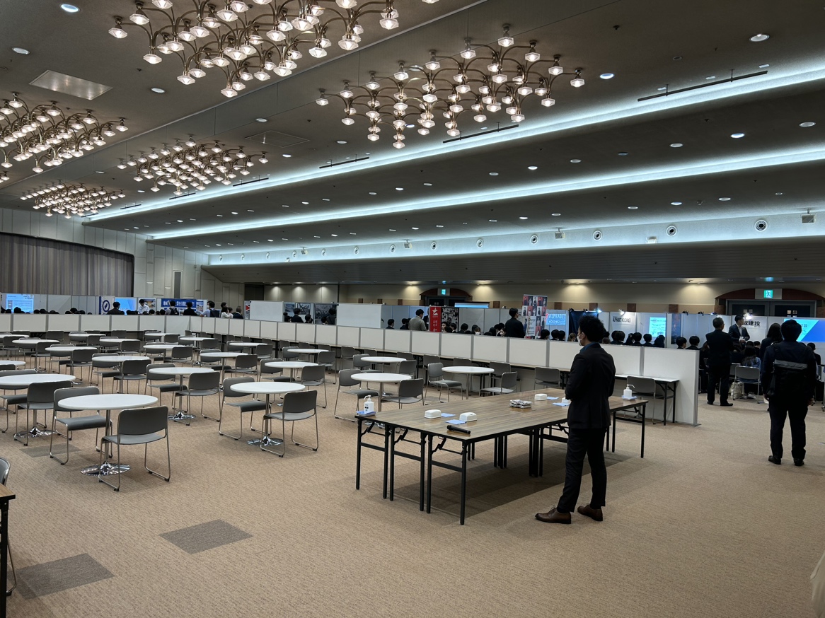 会場は、福岡市博多駅前のFFBホール。 ブース準備中。 『当社のブースに来てくれるかな…。』と準備しながらも、ちょっとドキドキな時間帯なんですよ。