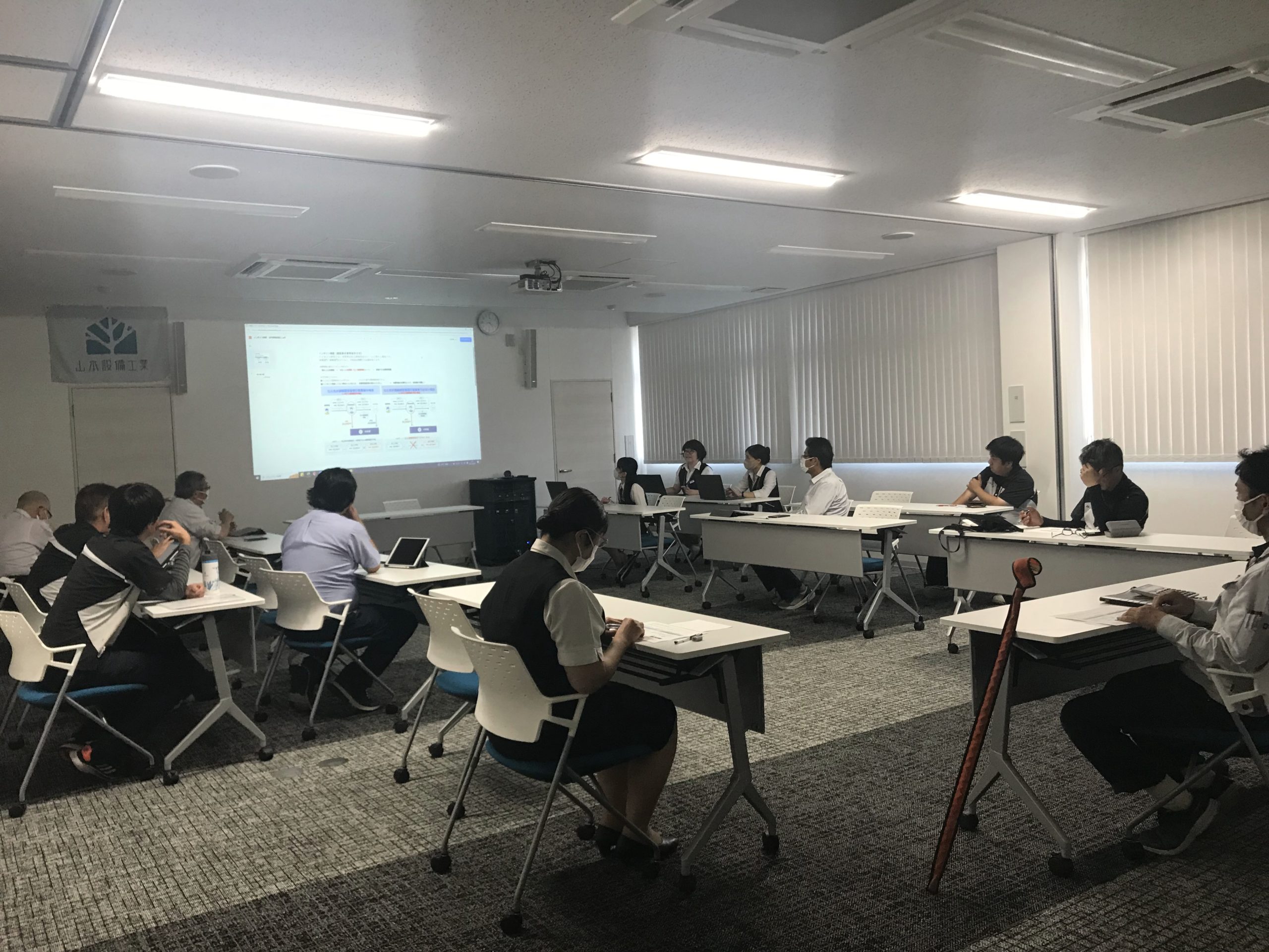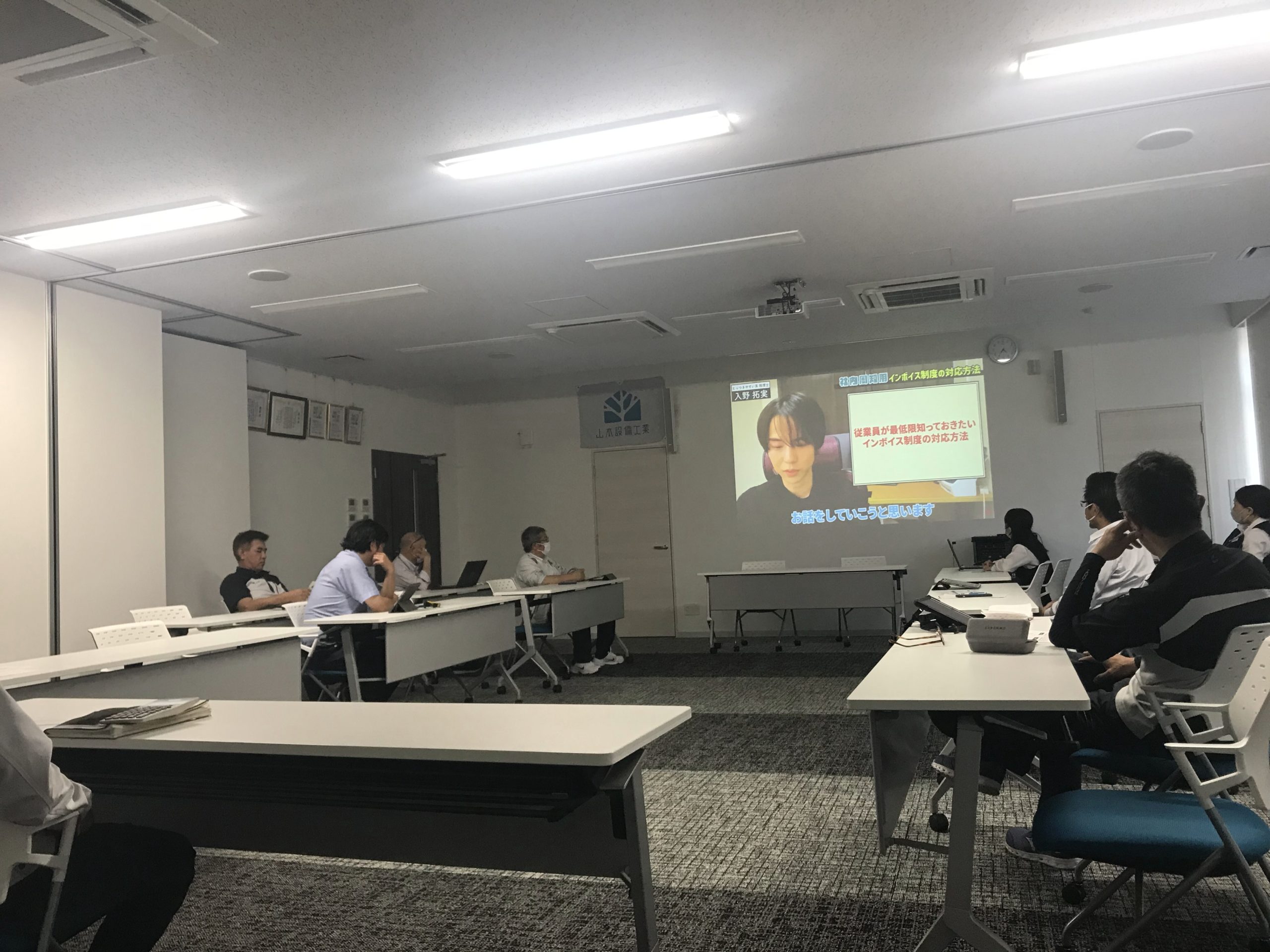 画像は、業務部(大規模改修や修理をする部署)の会議にお邪魔した時のもの。 まずは、インボイス制度の説明動画を視聴。
