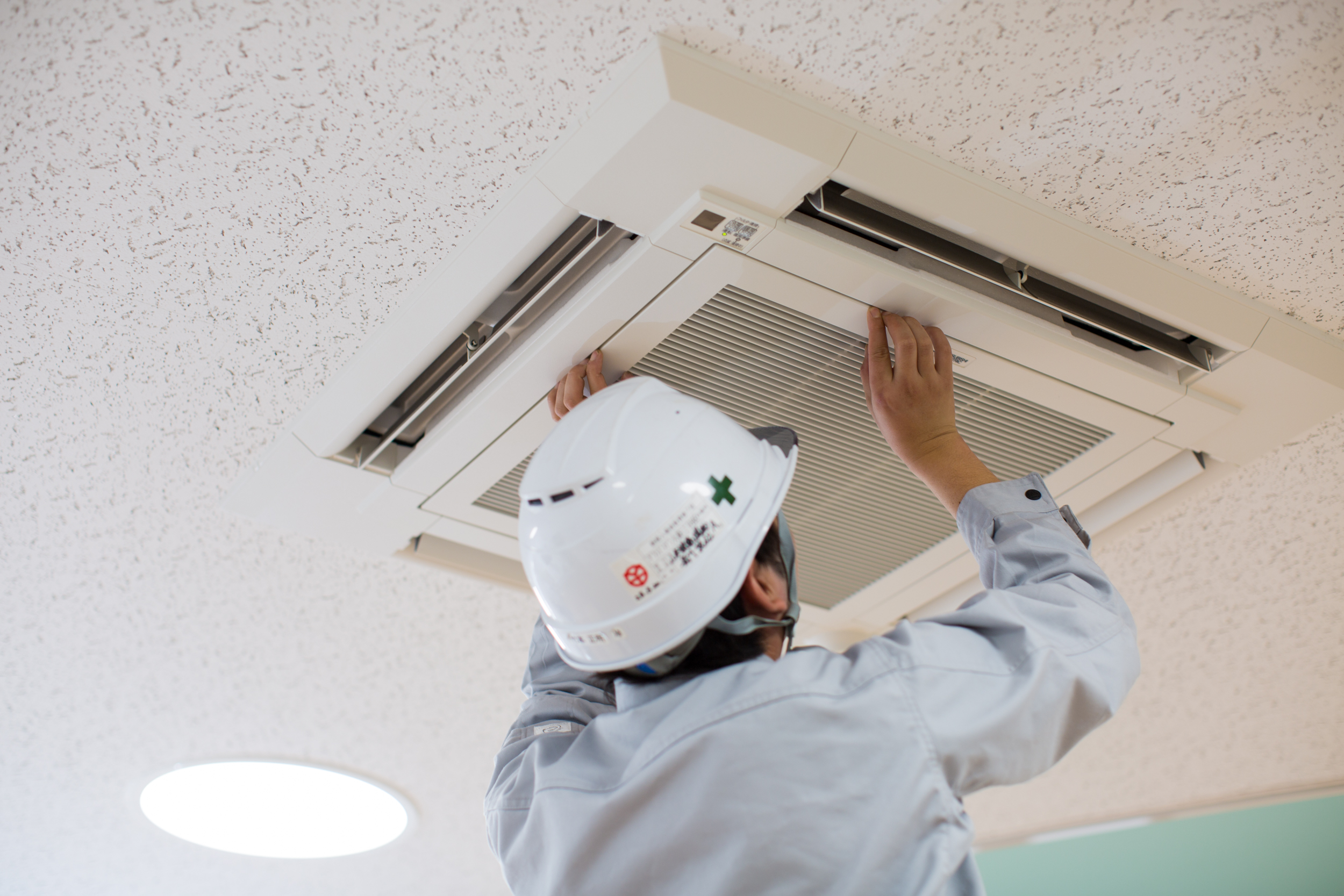 山本設備は主に台所・お風呂・トイレなどの衛生設備、エアコン・換気扇などの空調設備に関する工事の指示や管理・発注業務等を行う「施工管理」と、建物完成後のアフターサービスとして衛生設備や空調設備などの「修理」を行っています。