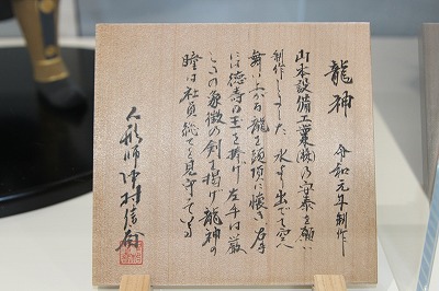 展覧会では、 当社でしか見ることができない龍神像はもちろん、中村信喬さんの初期の学生時代の作品から近作「エヴァンゲリオン」を含む40余点を見ることができるそうです!