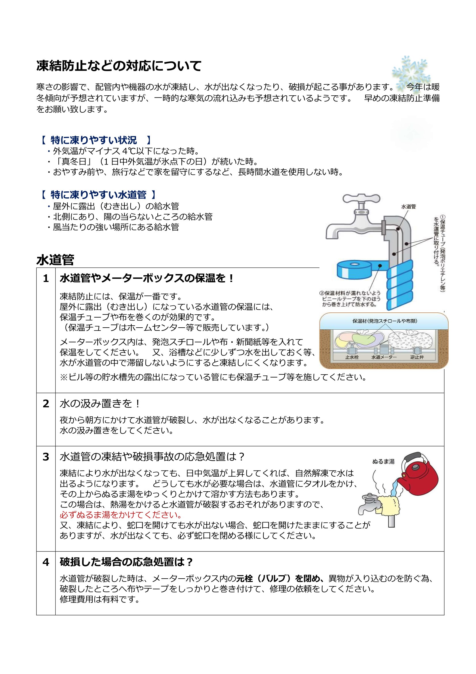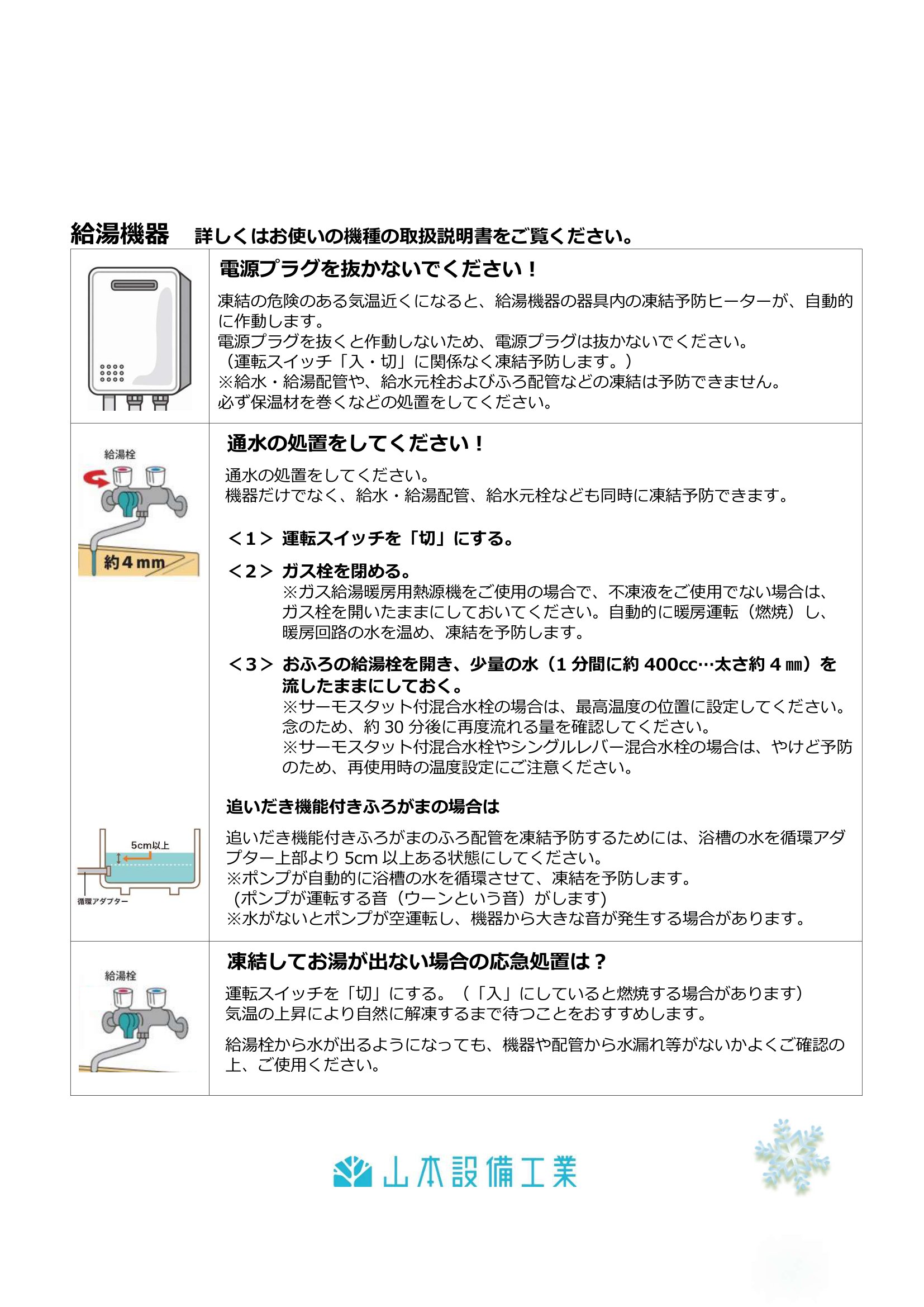 凍結防止に関するお知らせ